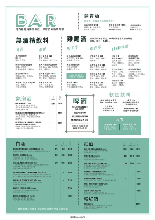 由英國名廚Jamie Oliver在台開設的首間義大利餐廳Jamie’s Italian Taiwan還記得營運之初掀起一股Jamie Oliver的風潮,Jamie Oliver著重於不是精細的廚藝,而是希望喚起人們對食材的認識、對自然的重視,並且以隨興、輕鬆、自在的料理風格為主,在Jamie Oliver的料理中您看不到超高級昂貴的食材,有的是最天然健康講究素材原味的料理,這也是Jamie’s Italian Taiwan與一般餐廳最大不同之處!