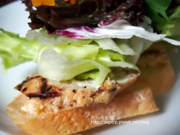 水蜜桃炭烤雞肉麵包Tapas$99(雞肉三明治上面搭配水蜜桃片,也還不錯,推!)