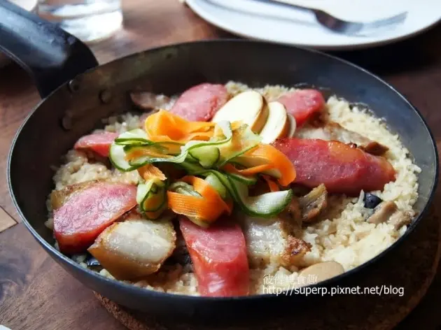 我跟同事去的前幾天,剛好有另一批同事們也去。我就問了一下是否需要訂位時先點菜,畢竟燉飯這種東西通常需要花比較多時間,不知道上班族的午休時間夠不夠。結果她表示不需要,因為燉飯【咻一下就出來了】XD 看來是已經把燉飯都先做好,不然無法應付上班族的午餐。