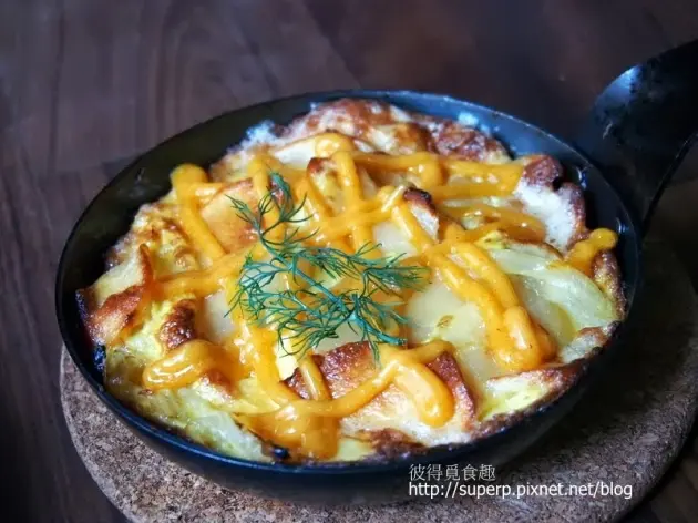 馬鈴薯烘蛋佐西班牙美奶茲$99(其實還不錯,馬鈴薯跟蛋本來就很契合,搭配甜甜的醬汁,推!)