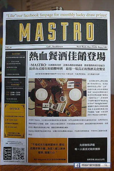 白天拜訪室內的採光明亮,內湖的Mastro和民生店及復北店三家各有不同的風格,餐點也有所差異,之前去過民生店對餐飲的部份覺得滿意,因此才會想來內湖店回味美味餐點。