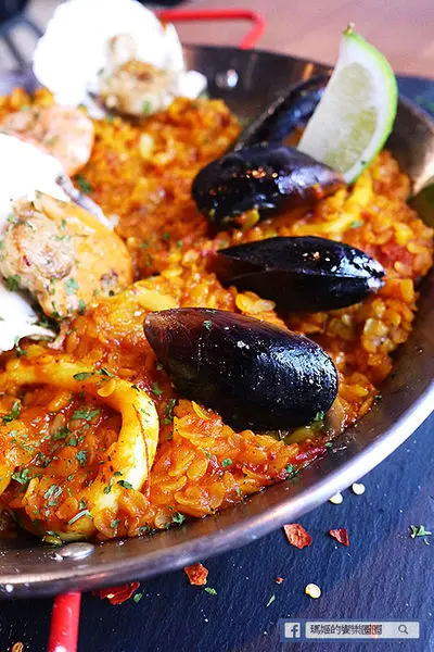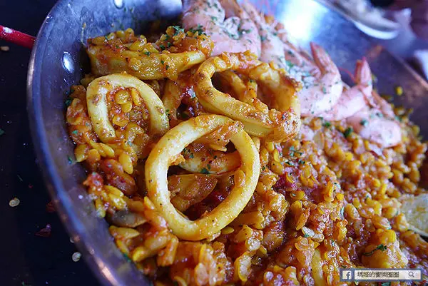 燉飯用的是義大利米型麵,上次在民生店吃到就覺得很喜歡!這回用在西班牙海鮮飯裡燉煮的時間可能較長,加上用蕃茄紅醬煨煮,吸飽了醬汁口感比較軟,但又比一般燉飯來得有嚼勁。