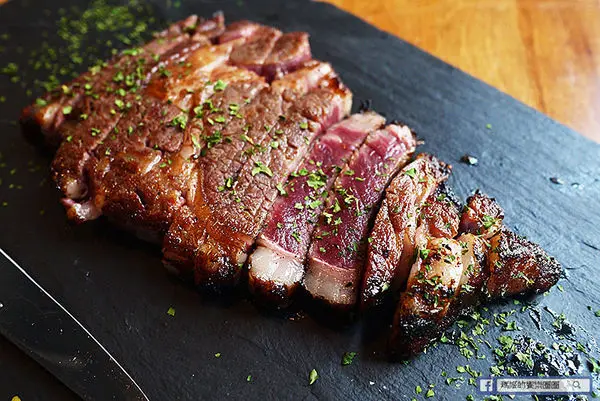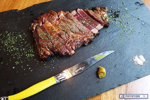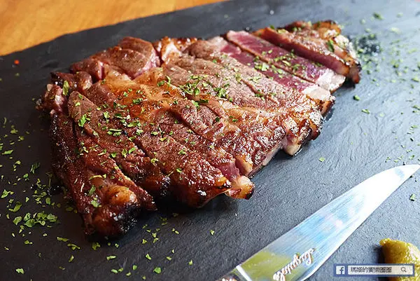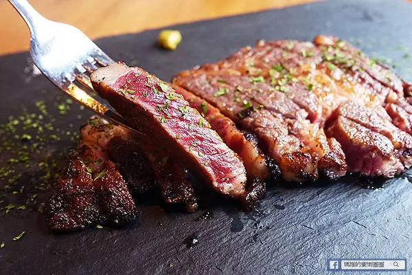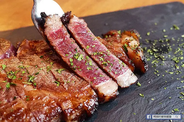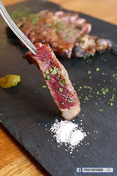 從牛排的橫切面看來牛肉呈鮮紅色,覺得好像很生,但其實一點也不會,外層烤得香酥內層保有軟嫩的口感,保留下來的是原有的肉汁而不是生肉血水。