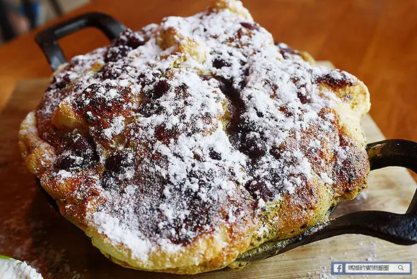 這舒芙蕾鬆餅呈現著小山丘的形狀,直接用小鐵鍋下去烤