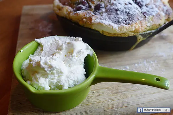 鬆餅附有清爽如泡沫般細緻滑順的鮮奶油,沾著吃風味更佳