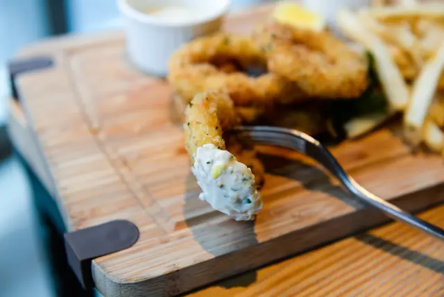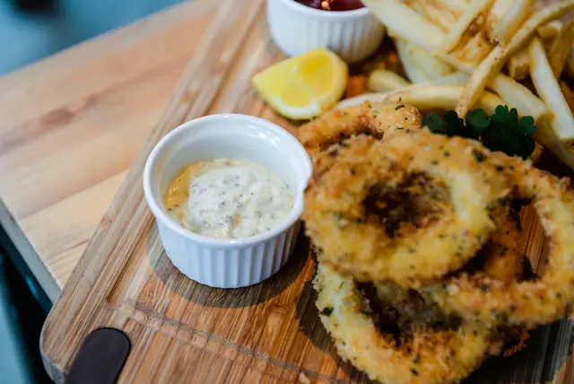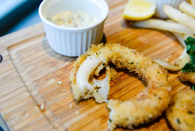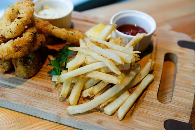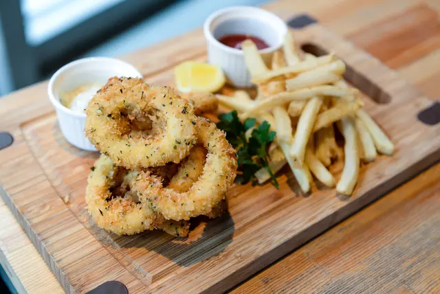 花枝和薯條的拼盤組合
