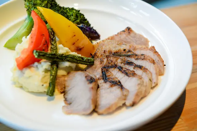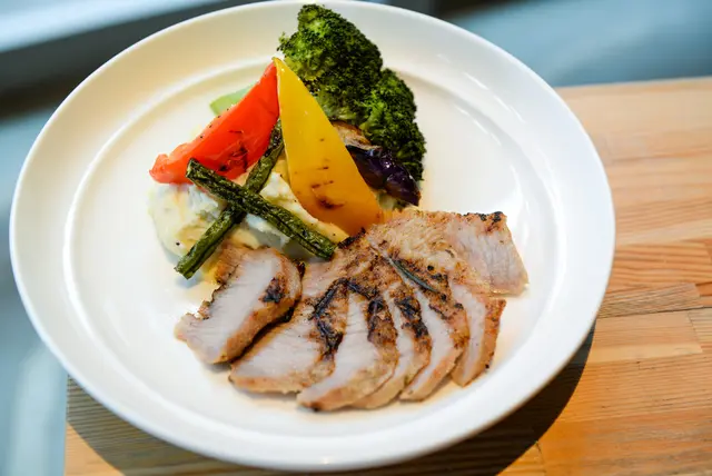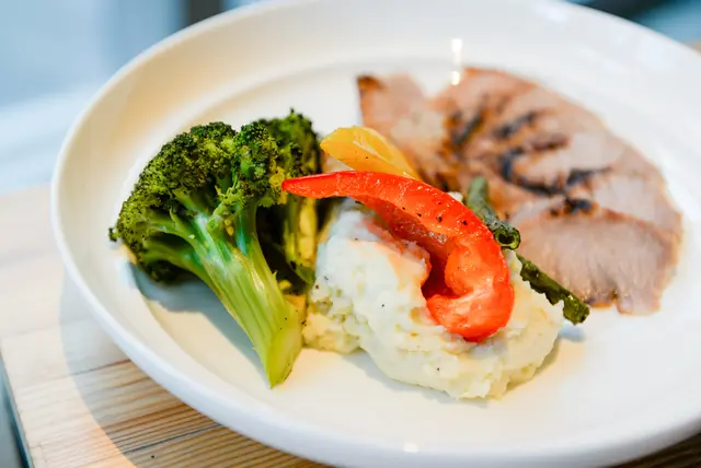 旁邊配上大量的蔬菜及薯泥