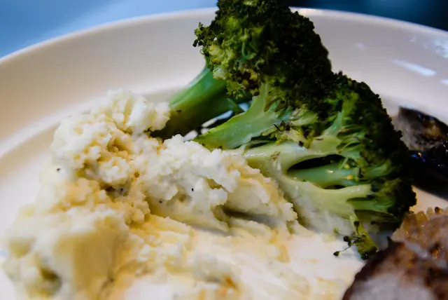 花椰菜是用快半顆的份量,是微燙後再烤,所以口感上會覺得比較生是正常的喔