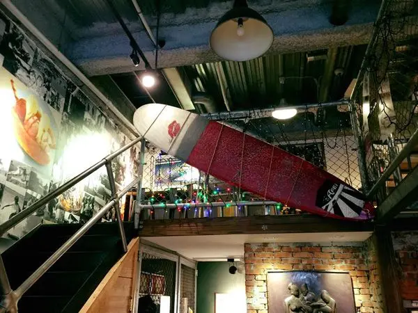 右手邊是吧台區 到處都可以看到很酷的裝飾