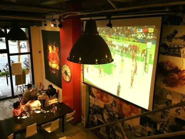 另外也有投影螢幕 可以邊享用美食邊看球賽呦