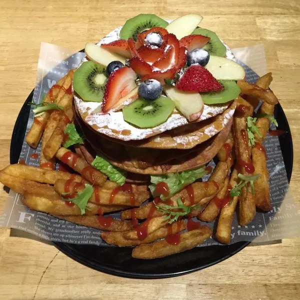 一道披薩有兩種口味 上方兩層是甜的 下方的則是鹹的