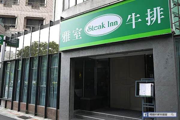 雅室牛排的新址外觀給人的感覺沉檼大方,綠白相間的招牌顯而易見,雖然在巷子裡但一眼就讓人看見。
