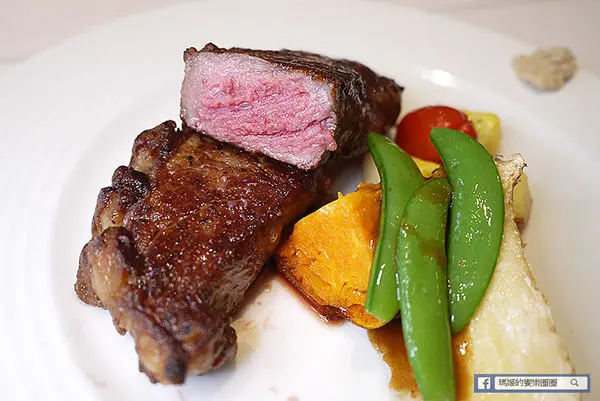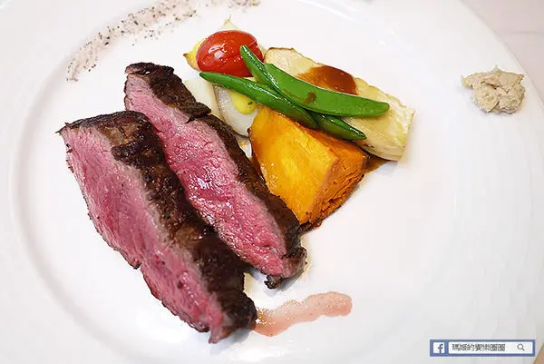 我們選的正是5分熟的熟度,漂亮的粉嫩色澤看起來肉汁豐富,外層煎烤得香脆和內層分進合擊似的征服老饕的味蕾,當我入口忍不住發出了一聲「嗯~」的長音,閉眼享受口中這塊老饕牛排帶來的無限滿足!
