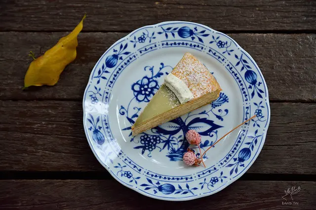 抹茶味非常濃郁,無論是千層蛋糕內或是上方都塗滿了香濃的抹茶醬,也灑上了抹茶粉,味道不甜膩,口感同樣十分綿密好吃!