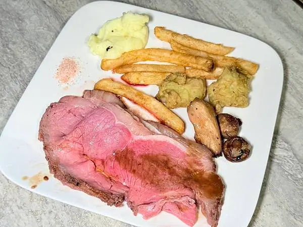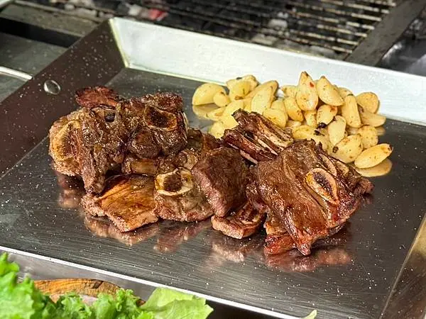 假日午晚餐,板腱牛還升級成「帶骨牛小排」,更是油嫩好吃。
