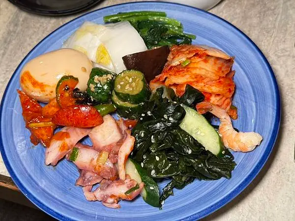 有韓式泡菜、韓式醬菜辣拌魷魚、麻藥蛋…等數十款小菜可拿取,