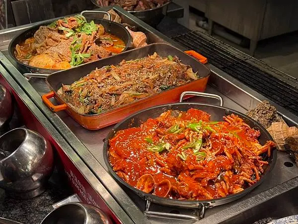 一、韓式小菜無限續:韓式料理的小菜文化,有著滿滿的思密達感,讓人開胃解膩的同時也大快朵頤!大推熟醃醬蟹是必吃!