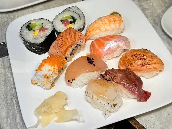 搭配現場炙燒和牛、鮭魚、干貝握壽司,超滿足。