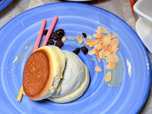 ▼現點現做的「開心果生乳夾心舒芙蕾鬆餅」,澎鬆綿密超好吃!