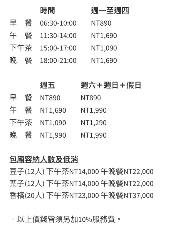 活動期間,午晚餐每位$1690起+10%,