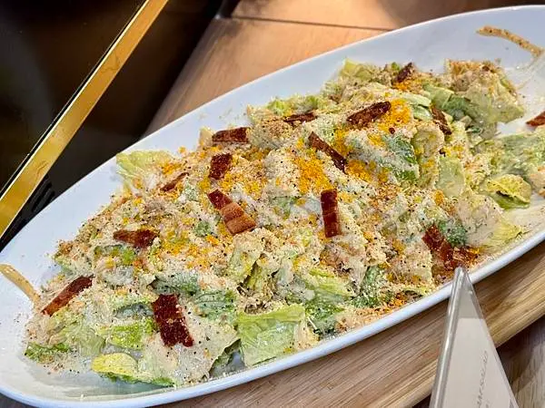 新鮮的蘿蔓萵苣,淋上自製的凱薩醬汁,