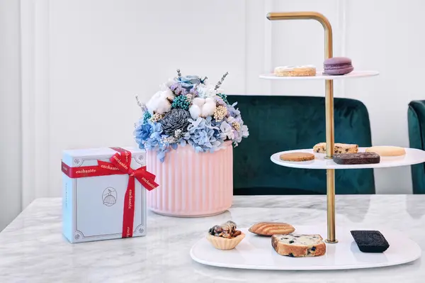 當天品嘗完跟妹妹的心得,「enchantée 樂朗奇法式手工喜餅」不管是外包裝還是餅乾口感,都算是跳脫了傳統喜餅的模樣,提供了新人,尤其是妹妹這種年輕族群新穎選項,而「enchantée 樂朗奇法式手工喜餅」最大特色除了上面提到,主廚皆採用新鮮食材製作、不添加人工香精以外,更特別的是餅乾口感都非一般品嘗到的餅乾酥脆而已,多半是像鬆餅以及蛋糕的口感,厚實綿密,口感豐富且不單薄,是我跟妹妹認為相當特別之處,而更不用多提的是試吃間,提供了超美法式舒適還,得以讓新人在忙碌籌備婚禮之際,能有一刻稍作休息喘息的氛圍,並且靜下心來挑選真正自己最想要提供給長輩和朋友們的一盒喜餅。哦!對了,「enchantée 樂朗奇法式手工喜餅」不僅僅提供喜餅,也有提供彌月蛋糕哦,有興趣的朋友可以打電話預約試吃(FB : enchantée 樂朗奇法式手工喜餅 )。
