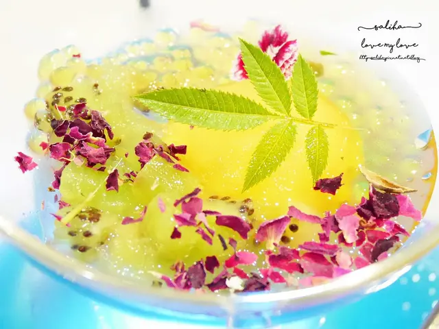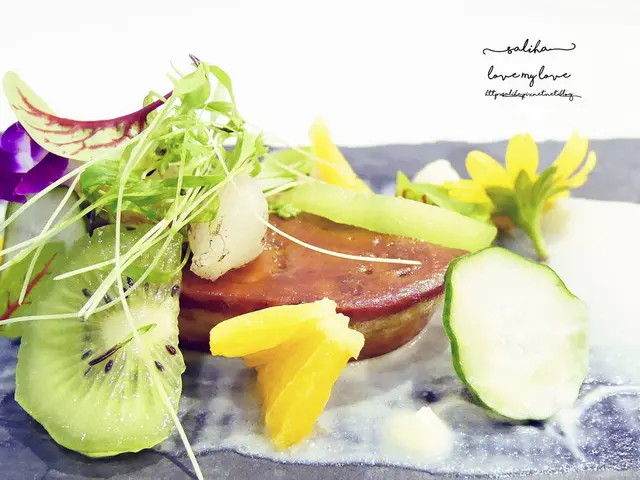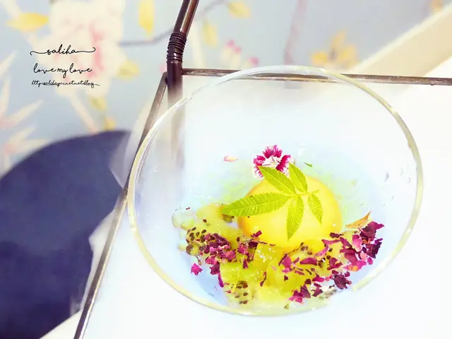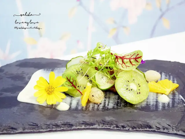 芒果做的分子料理搭配奇異果跟一些小果凍,