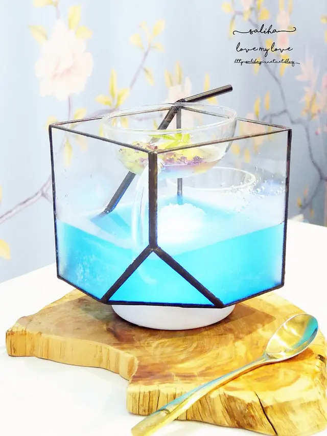 如同它的名子,白霧乾冰繚繞在晶藍色液體的週遭,