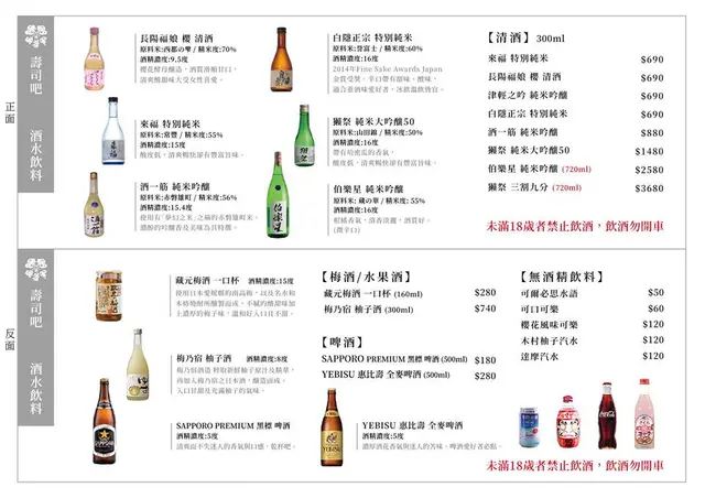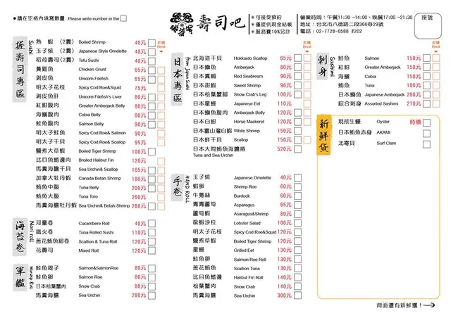 瞞著爹壽司吧菜單
