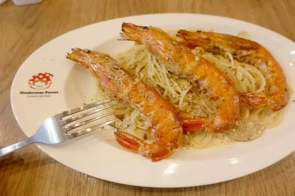 一般比較常見的是辣炒鮮蝦義大利麵 <-- 完全不會想點