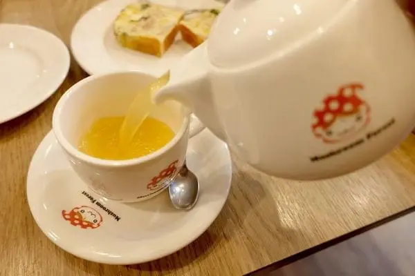 茶壺、杯子、盤子上通通都有蘑菇的 logo 耶!!