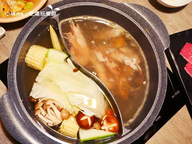 左邊的高湯加入蔬菜跟肉品涮過的甜味,湯頭喝起來更鮮美喔