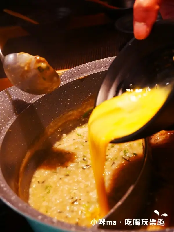 最後淋上蛋液攪拌均勻,充滿鮮味的雜炊就要上場