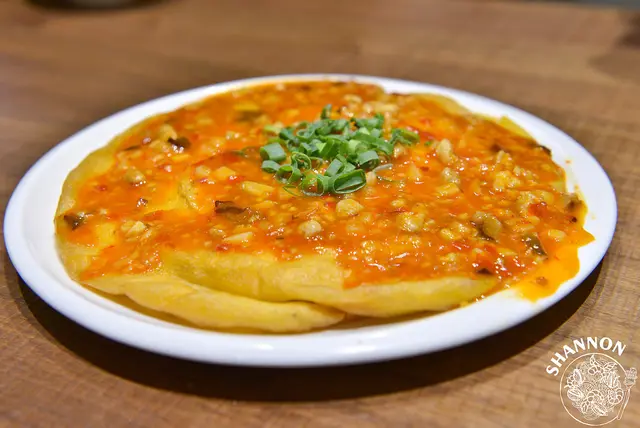 邊炸煎的烘蛋油味很重,上方的醬類似豆瓣醬蠻鹹的我自己也不太喜歡這樣的味道,也因為整體這樣搭配味道較重不過喜歡豆瓣醬的或許會喜歡!