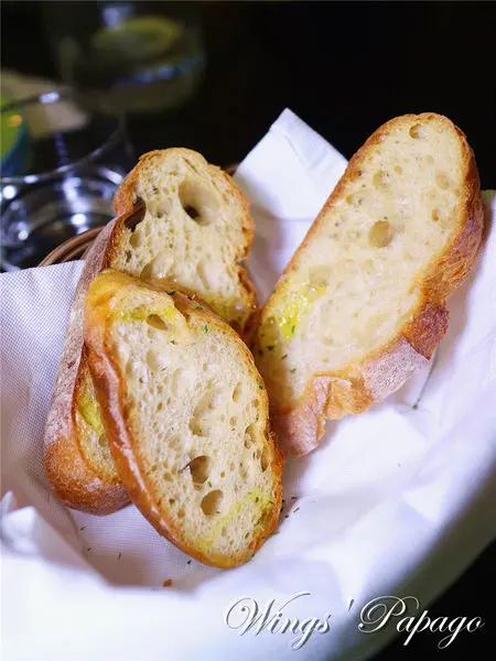 烤的酥脆的法國麵包加點橄欖油就很可口了。