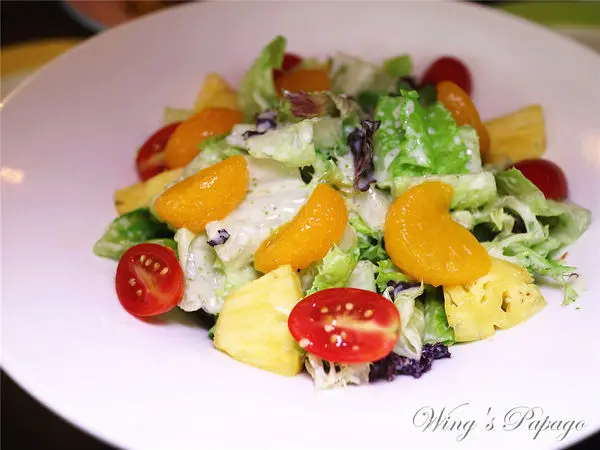 不同於一般水果沙拉的內容,這兒加的是鳳梨及橘瓣兩種水果,