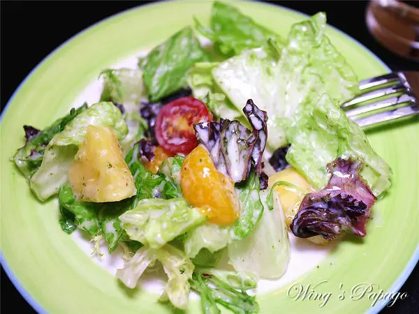 沙拉一盤份量還蠻多的呢!加勒比海餐點會使用大量的熱帶水果及香料,