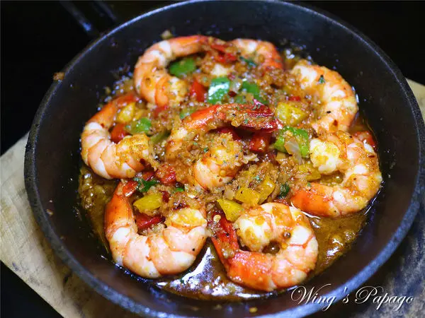 使用大量蒜頭、甜椒及特調醬料等一同拌炒,蝦子鮮甜,帶有濃郁蒜香好入味啊!