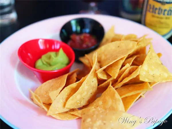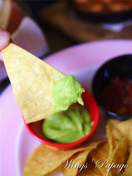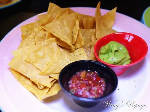 墨西哥脆片有酸奶油/紅豆泥/酪梨醬/莎莎醬四種沾醬可選,