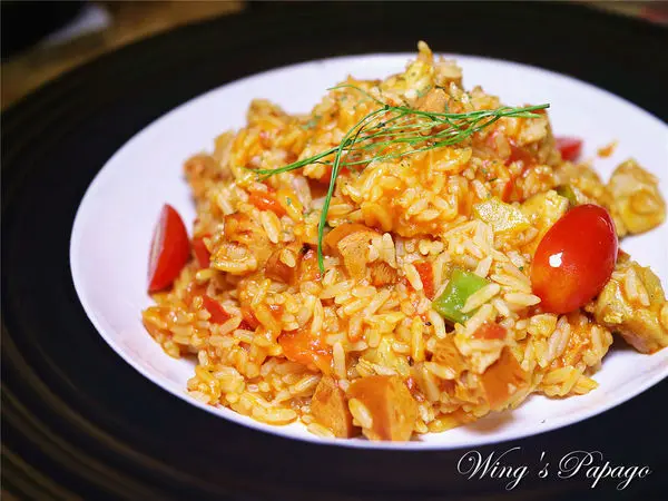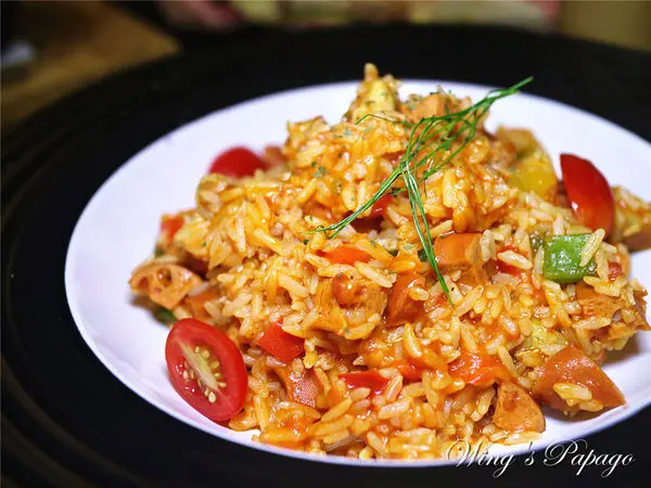 烹調時加入臘腸、雞肉、甜椒、西芹、番茄等,