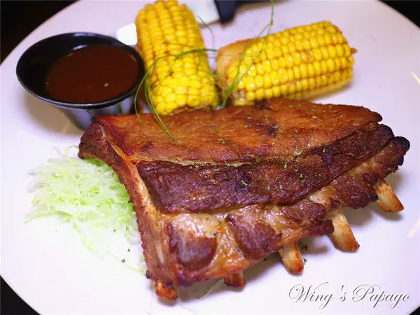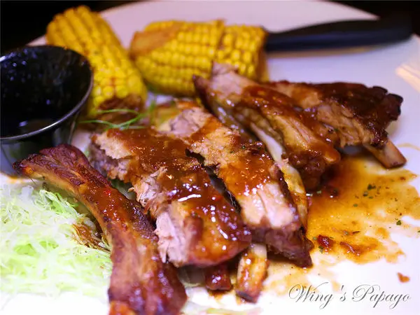 肋排烤到外層酥香,大塊厚實,淋上辣醬更為誘人。