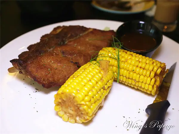 貼心地幫我們把辣醬另外放,一旁則附上切半的整支玉米。