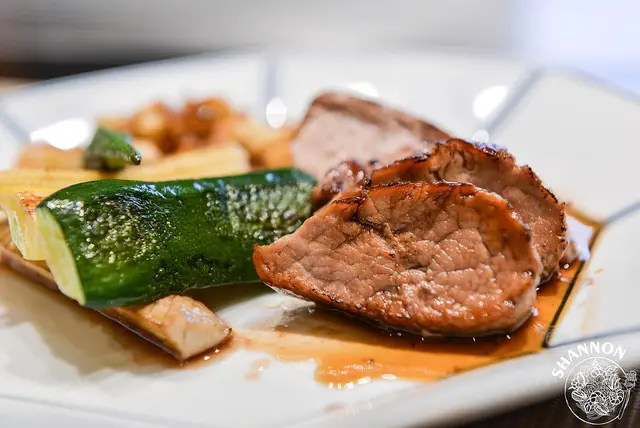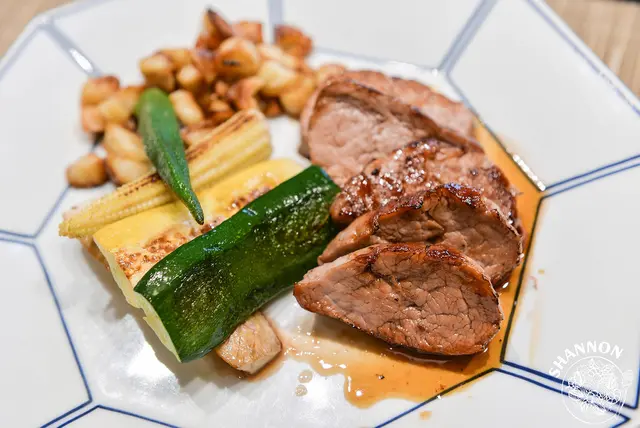 而另一道主餐牛肉使用了菲力,不過我們都覺得過度料理了,導致肉的口感老柴不太討喜,味道上也偏鹹了!