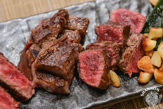 肋眼軟嫩又有豐富的油花好吃,菲力口感很有彈性