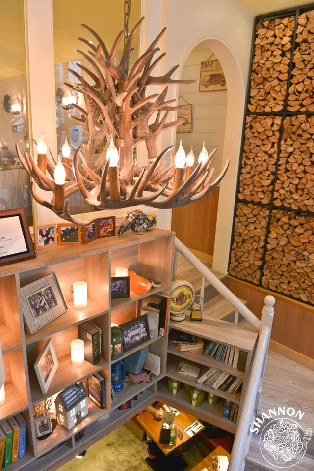 我覺得整間店的最讓我喜歡的試使用大量的木頭、鹿角的設計!