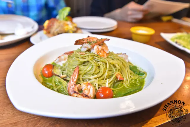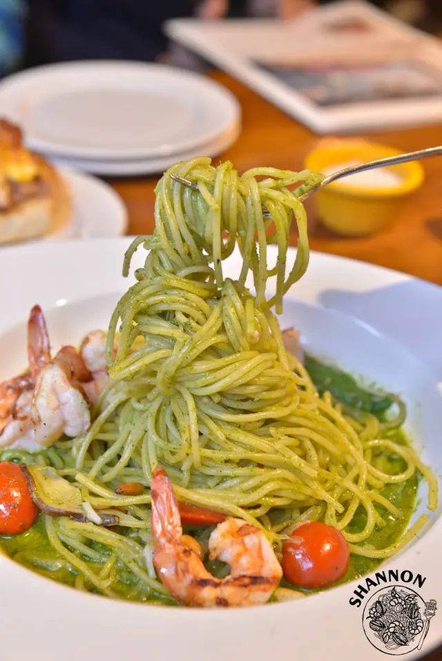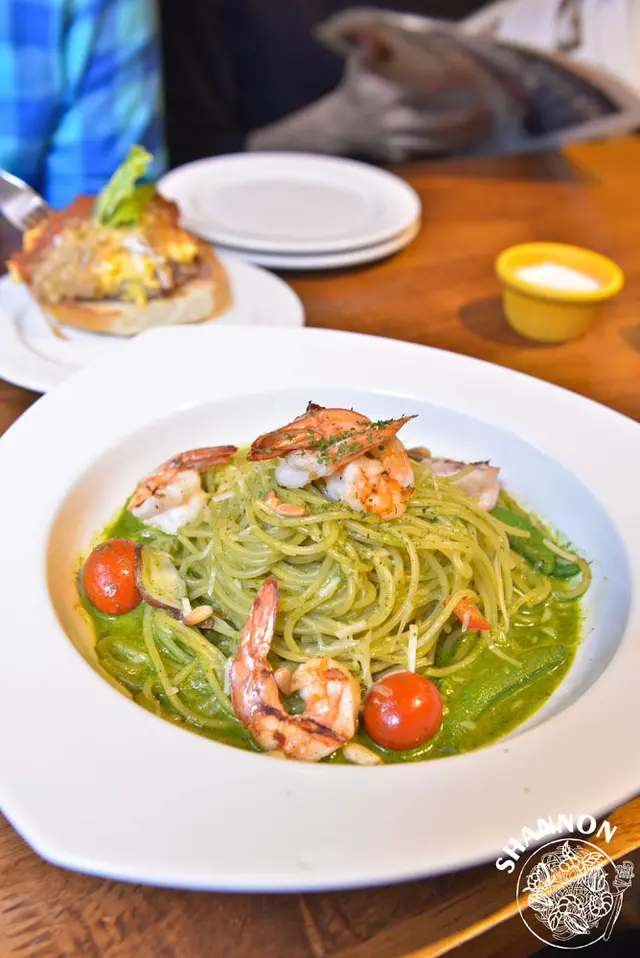 我來這邊就是為了點用義大利麵,新款的義大利麵出了一種外頭常見的青醬鮮蝦,平常不太吃青醬的我今天點了這個來吃整體算還蠻滿意的而且吃起來超飽的!