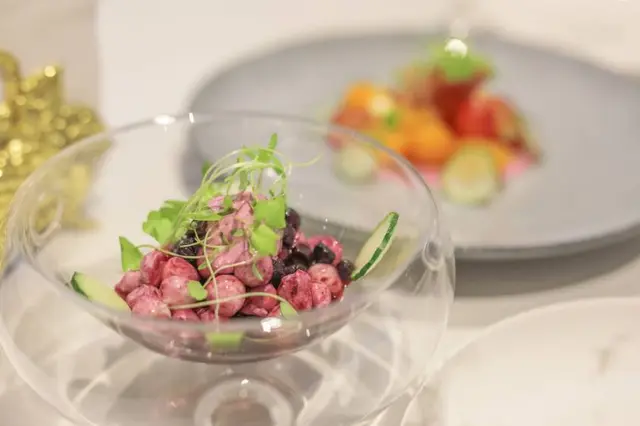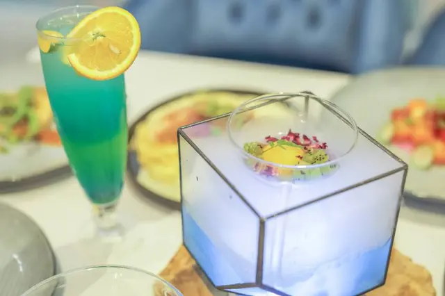 使用玻璃器皿裝盛,藝術美學在擺盤上展露無遺。