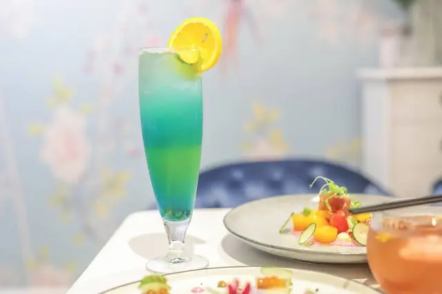 輕透的藍色、散著白霧,讓調酒仙氣十足,頗有精靈之泉的樣貌。