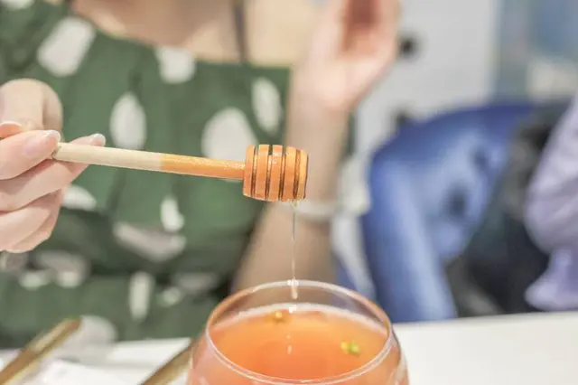 喝之前先用攪拌棒將底層的蜂蜜攪散。