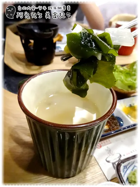 味噌湯很特別的是以馬克杯裝!湯頭還有用白甘蔗與玉米熬煮、增添自然甜味